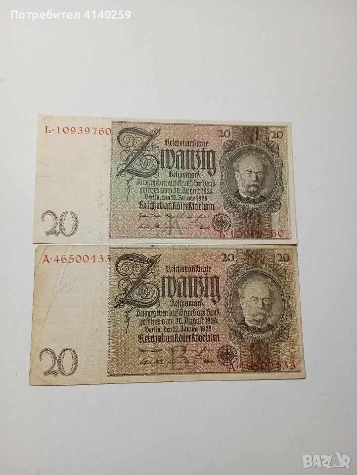 ГЕРМАНИЯ БАНКНОТИ 20 МАРКИ 1924 СЪСТОЯНИЕ ВИДИМО ЦЕНА ЗА 2 БРОЯ ПОЛУЧАВАТЕ СНИМАНИТЕ БАНКНОТИ РАЗГЛЕДАЙТЕ ДРУГИТЕ МИ ОБЯВИ ДА КОМБИНИРАТЕ ДОСТАВКА ЕКОНТ ЗА ВАРНА ЛИЧНО