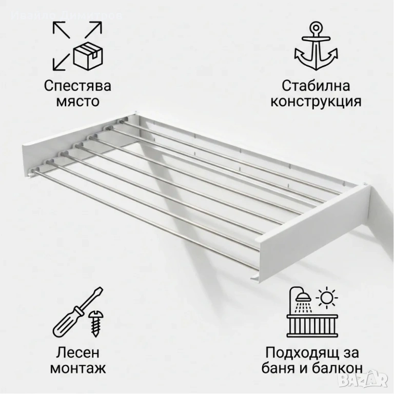 Компактна и стабилна конструкция, която ти дава удобство при сушене, без да жертваш пространство.