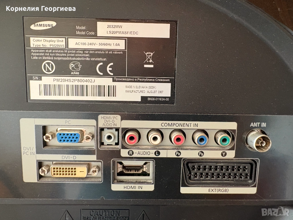 Продавам 20'' Samsung монитор с TV тунер, може да работи в режим картина в картината, предавайки едновременно телевизия и сигнал от компютър.