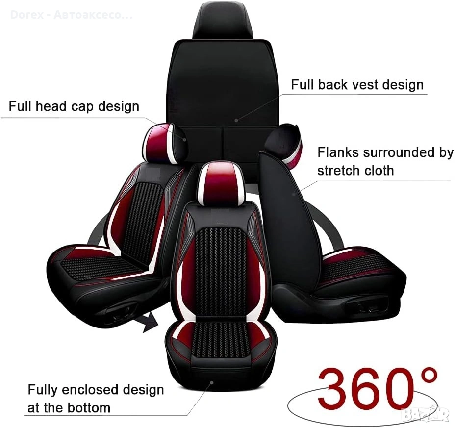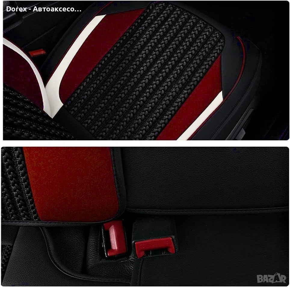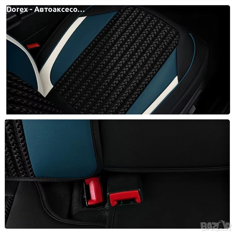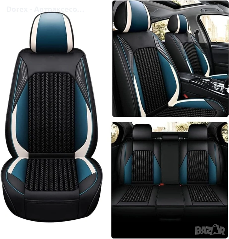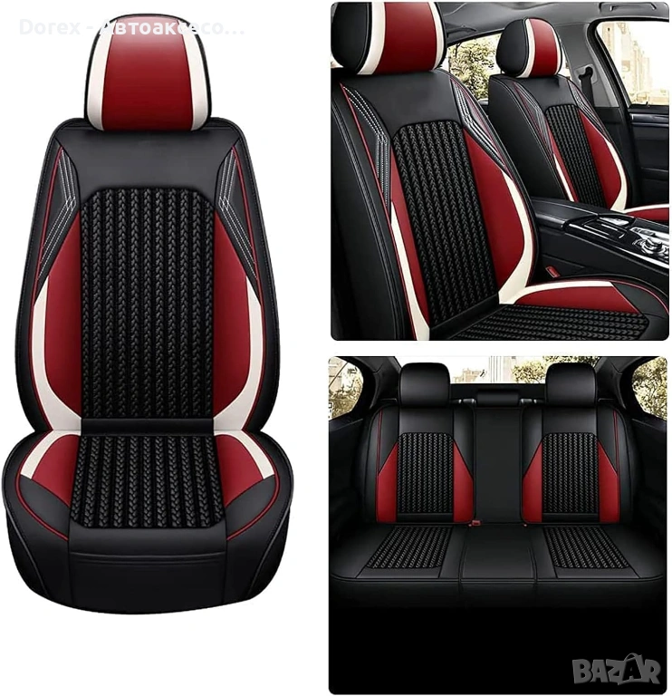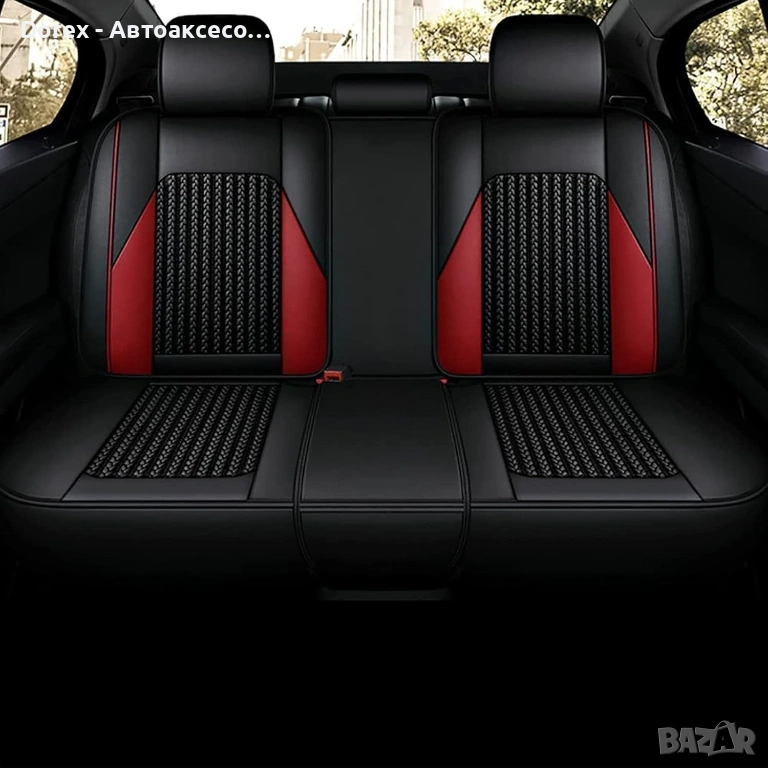 Висококачествен комплект универсални калъфи за автомобилни седалки, изработени от комбинация от еко кожа, пяна и дишащ текстил за максимален комфорт и стил.
