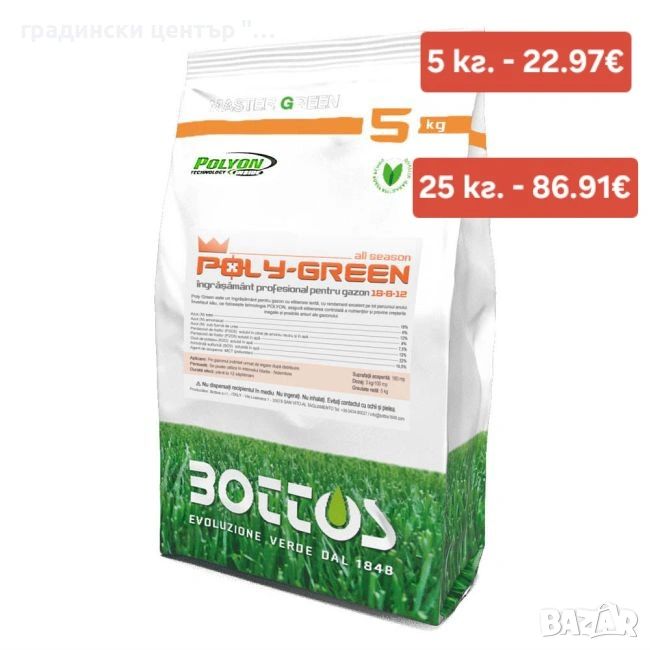 ALL SEASON / POLY GREEN: Универсални торове за целогодишна поддръжка с дълготраен ефект (до 90 дни).