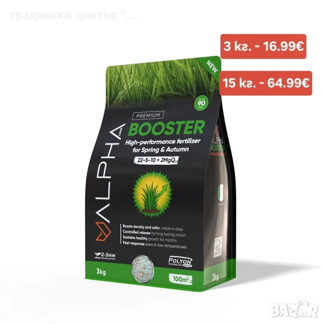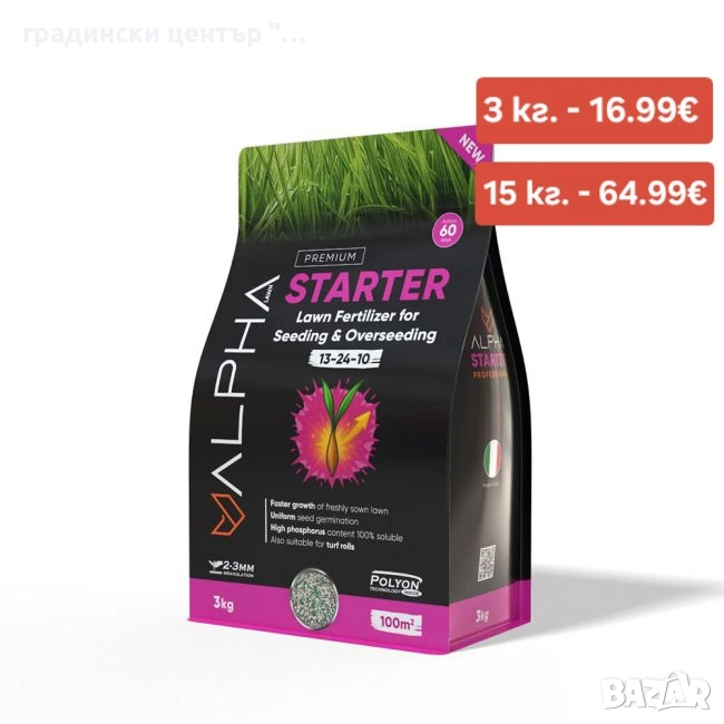 ALPHA STARTER (3 кг): Задължителен при сеитба! Мощни корени и бързо поникване.
