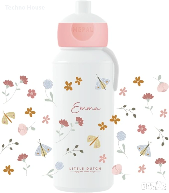 - ОТВАРАЩА СЕ БУТИЛКА ЗА НАПИТКА: Направете учебния ден на сина или дъщеря си още по-забавен с тази отваряща се бутилка за напитки с принт на цветя и пеперуди!