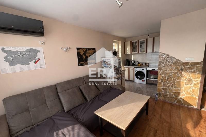 Жилището е с площ от 63 кв.м. и е функционално разпределено между спалня и просторна всекидневна с кухненска част, която има излаз към остъклена тераса. Допълнително удобство е втората тераса с южно изложение, достъпна както от дневната, така и от спалнята, също остъклена и подходяща за целогодишно ползване. Апартаментът разполага с баня с тоалетна в един обем. Имотът е след ремонт и се предлага с наличното обзавеждане, което позволява незабавно нанасяне без необходимост от допълнителни инвестиции. Отоплението е решено с два климатика, гарантиращи комфорт през всички сезони. Към апартамента има и прилежащо избено помещение, осигуряващо допълнително място за съхранение.