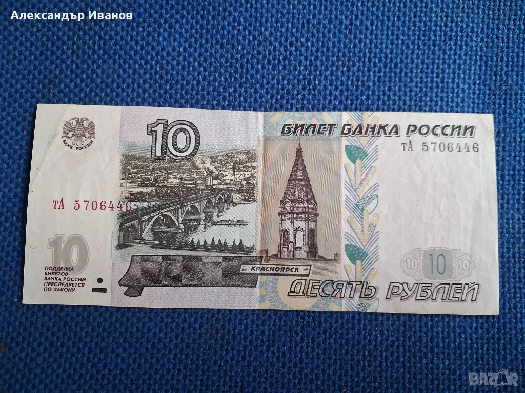 Стара банкнота 10 рубли 1997 г. → Обява 54216646