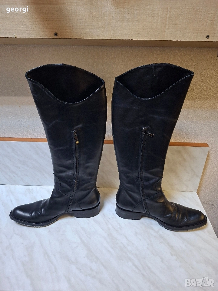 черни високи кожени ботуши номер 40 с цип → Обява 54216774