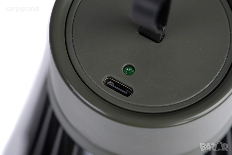 Устройството може да се поставя на равна повърхност или да се закача чрез удобна халка. Компактните размери го правят лесно за пренасяне и подходящо за риболов, къмпинг и други дейности на открито.