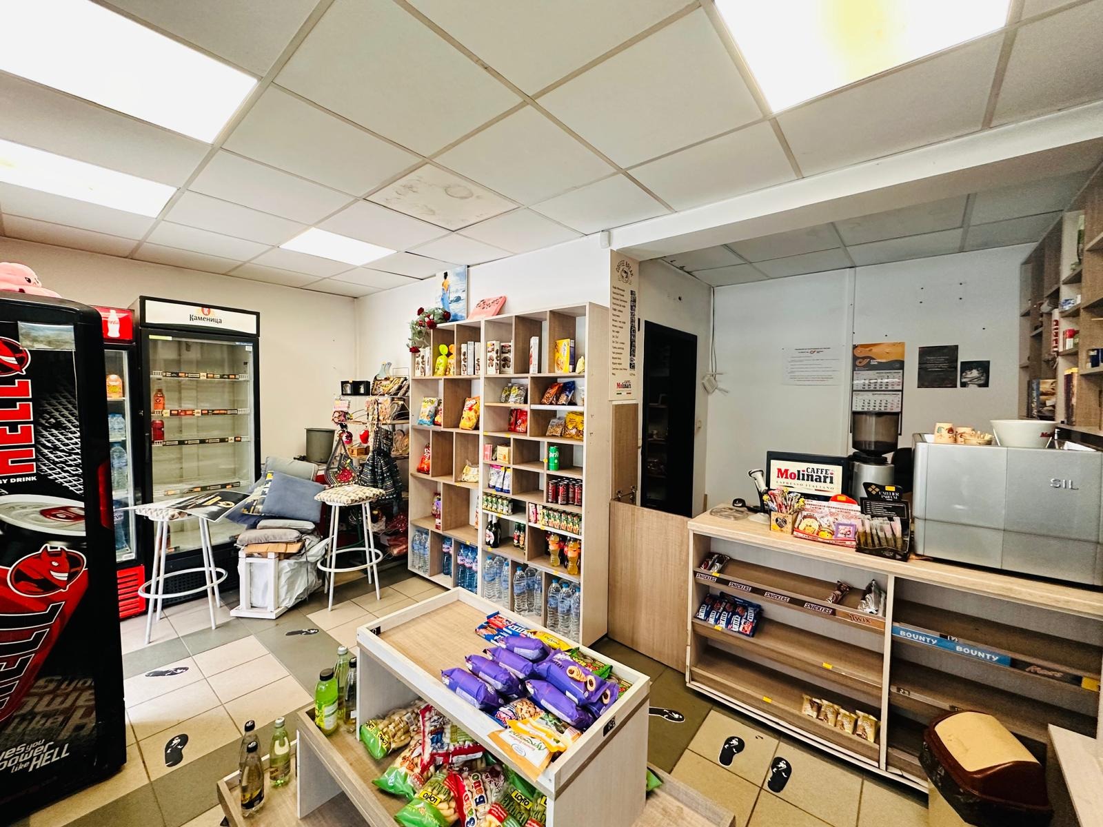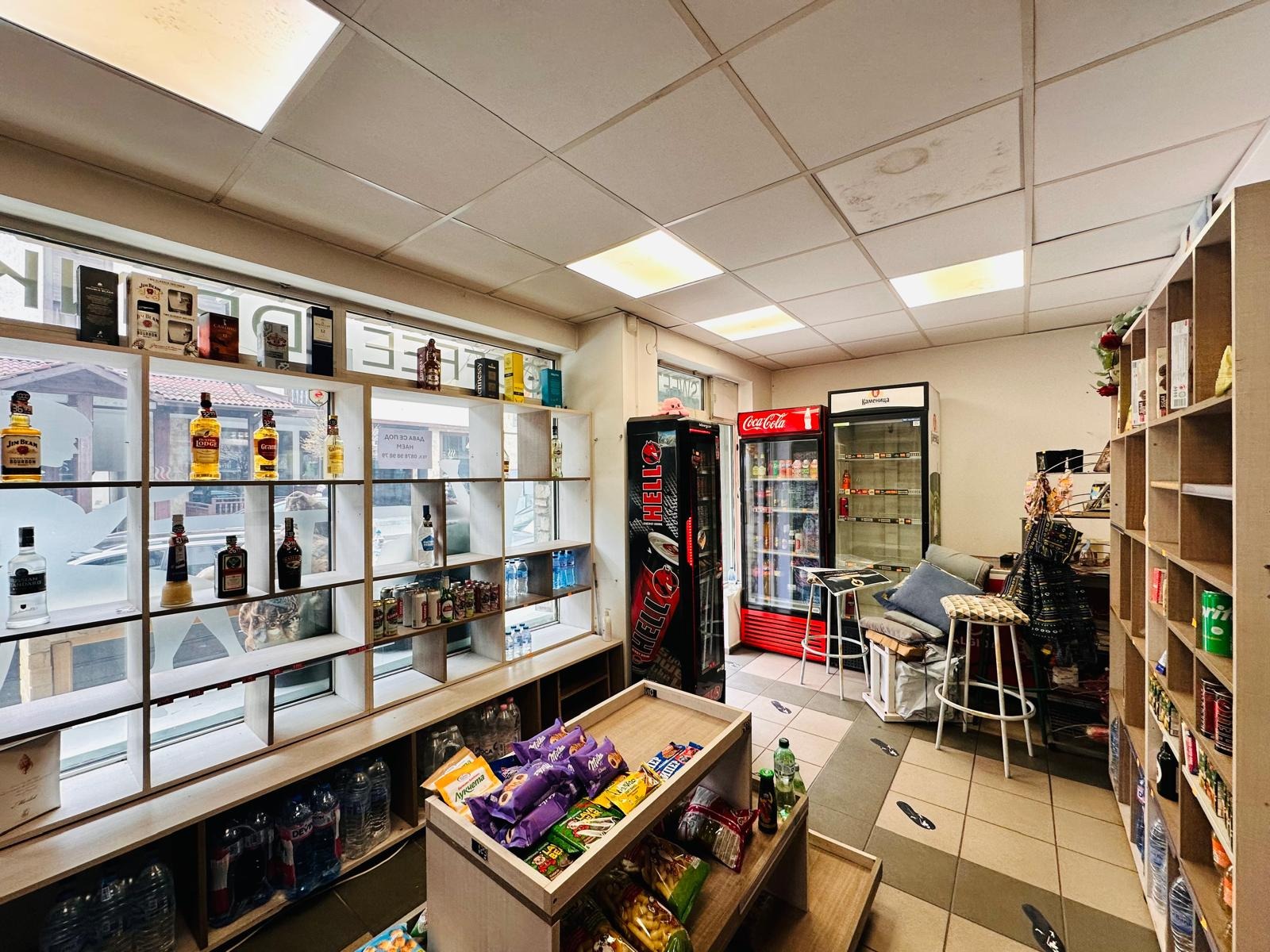 Помещението се състои от търговска площ, сервизно помещение оборудвано с мивка и тоалетна.