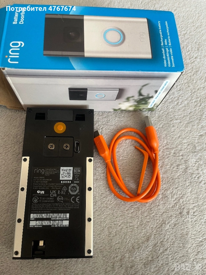 Продавам Ring Video Doorbell (смарт звънец с камера) – нов, само отворен.