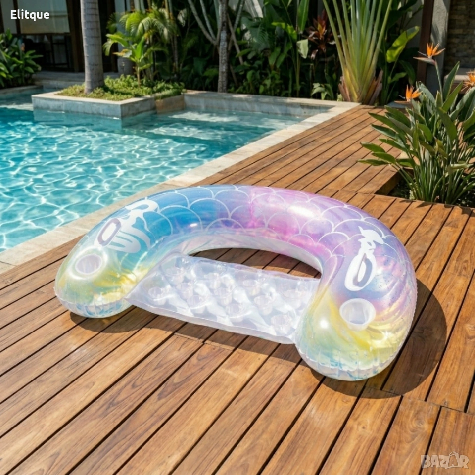 Надуваем матрак русалка или дъга 115x70 см с поставки за чаши.