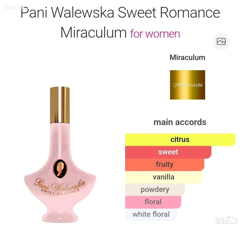 5️⃣. Колаж / Дамски парфюм Pani Walewska Sweet romance / 30ml EDP. Цената е крайна, без пазарлъци 18 евро. Полски парфюм с доказано качество в годините, чисто нов. Според Фрагрантика наподобява на Амор Амор на Кашарел, според мен на Омния на Булварѝ.