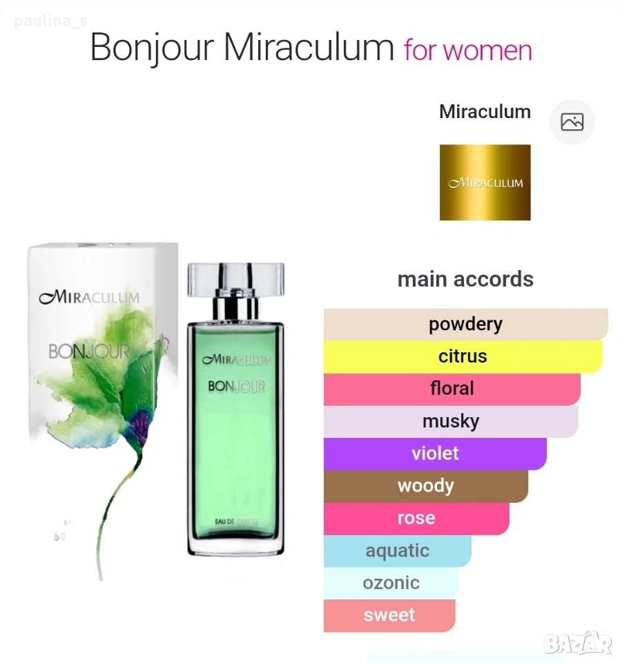 3️⃣ Колаж / Много рядка находка! Винтидж! Bonjour by Miraculum / 50ml EDP. Цената е крайна, без пазарлъци 45 евро! Дамски полски парфюм, част от личната ми колекция, пълна презентация, продукт с кутия. Подходящ е за подарък или или колекция. Липсват 2 фъса за проба, като нов, преди реформулировката. Спрян, мноого рядка находка, според Фрагрантика наподобява на Indian summer by Priscilla Presley.