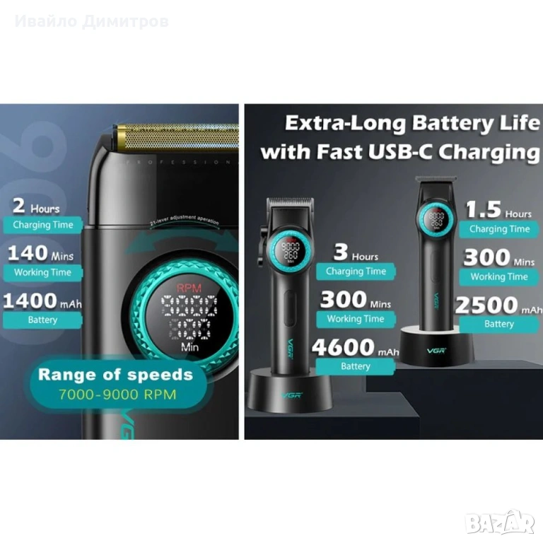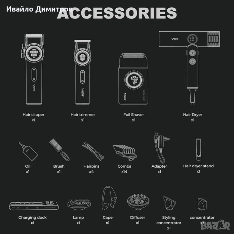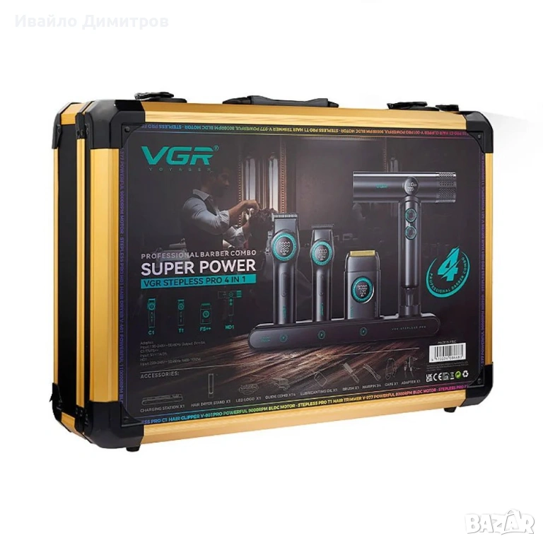 VGR Professional Barber Combo 4 в 1 – Професионален комплект за подстригване (Черeн)