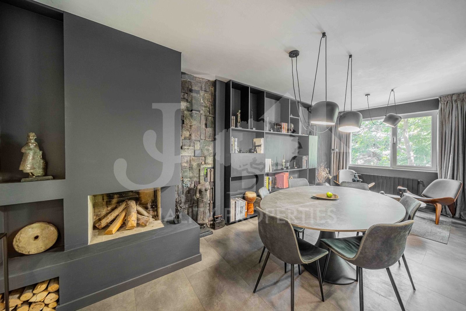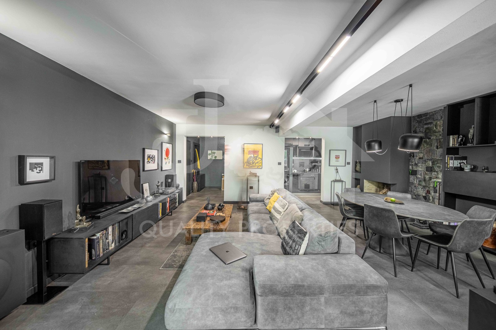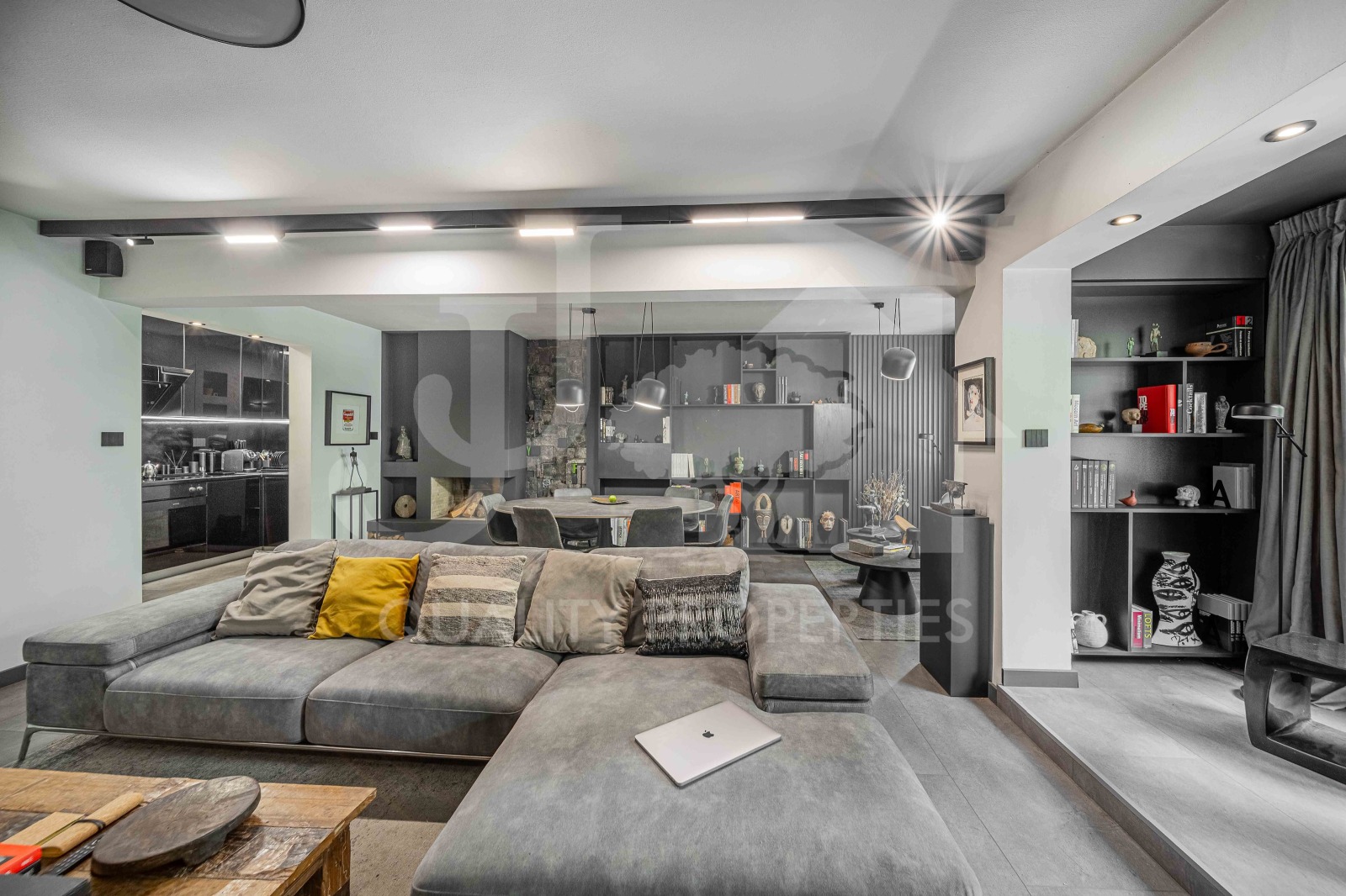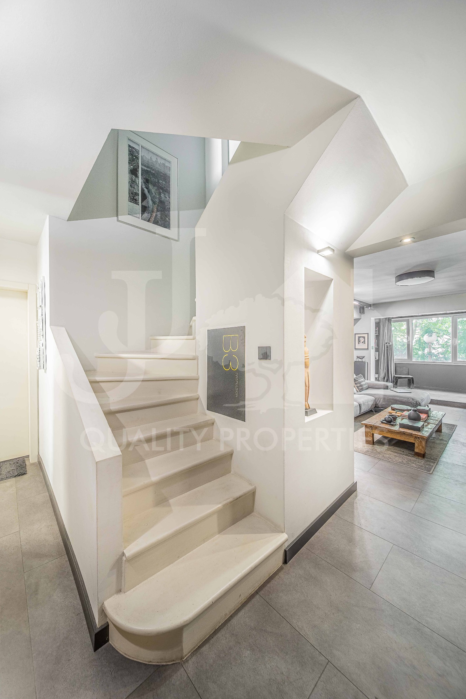 Апартаментът е мезонет, 180 кв.м РЗП, в много добро състояние като се отличава с високо ниво на довършителните работи и обзавеждане (италиански диван ALPA SALOTTI, столове ZUIVER, маси KARE - Germany, италиански осветителни тела FLOS ).