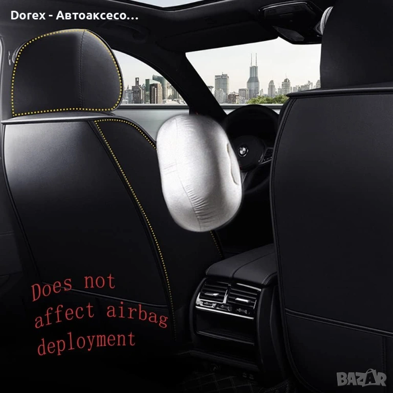 Модерният дизайн с контрастни шевове придава елегантна визия на интериора, а дишащите материали осигуряват удобство дори при продължително шофиране.