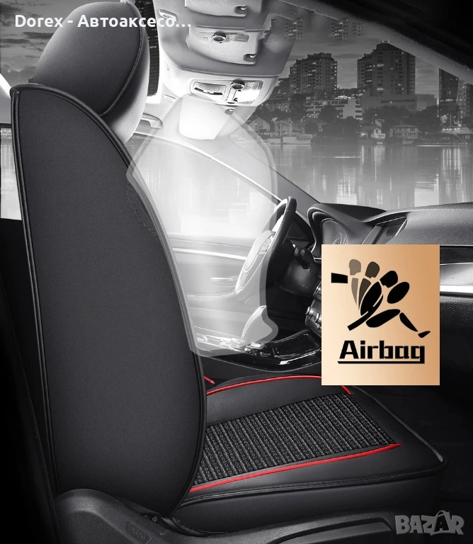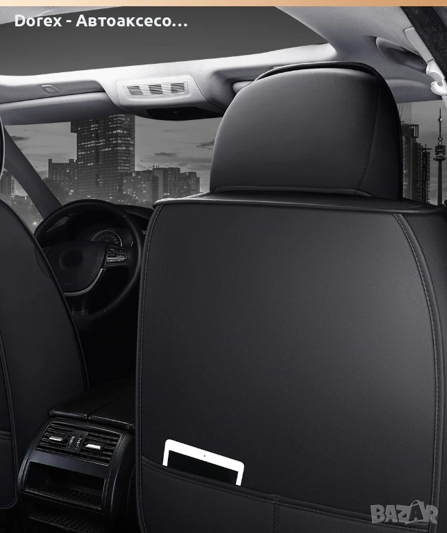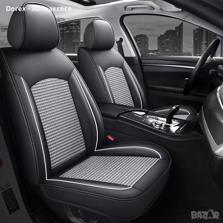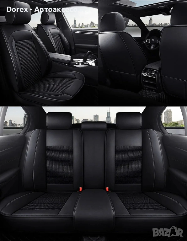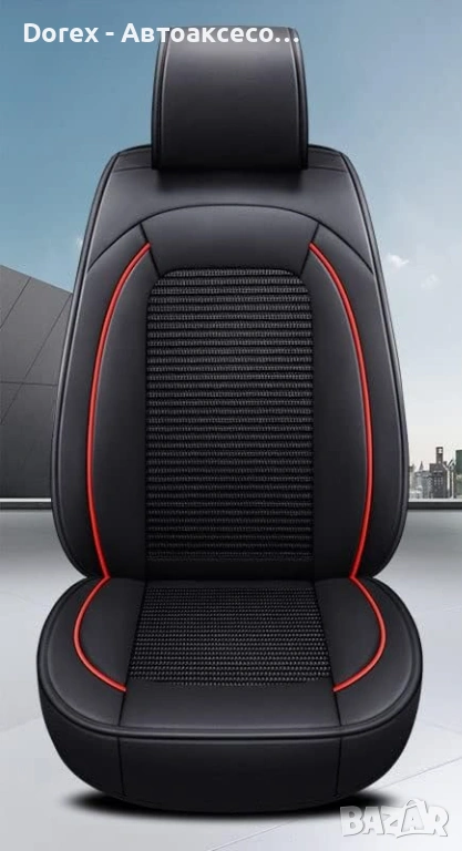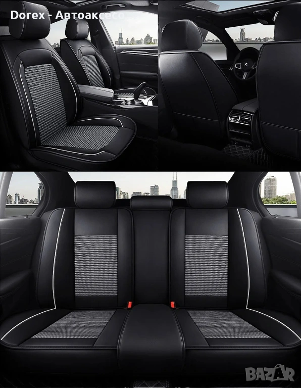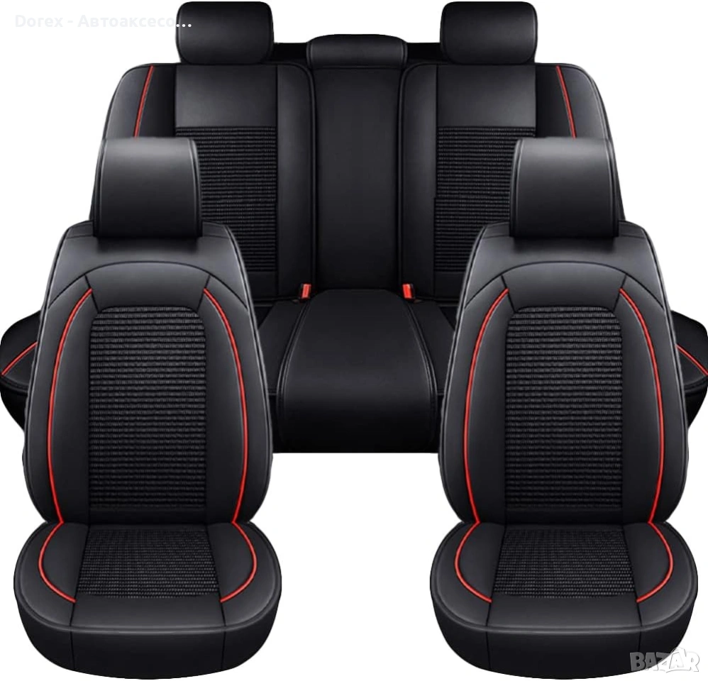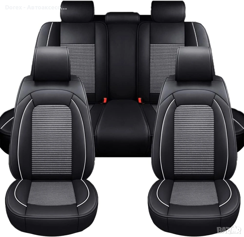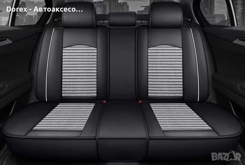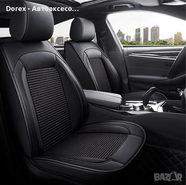 Висококачествен комплект универсални калъфи за автомобилни седалки, изработени от комбинация от еко кожа, текстил и пяна за максимален комфорт, издръжливост и стил.