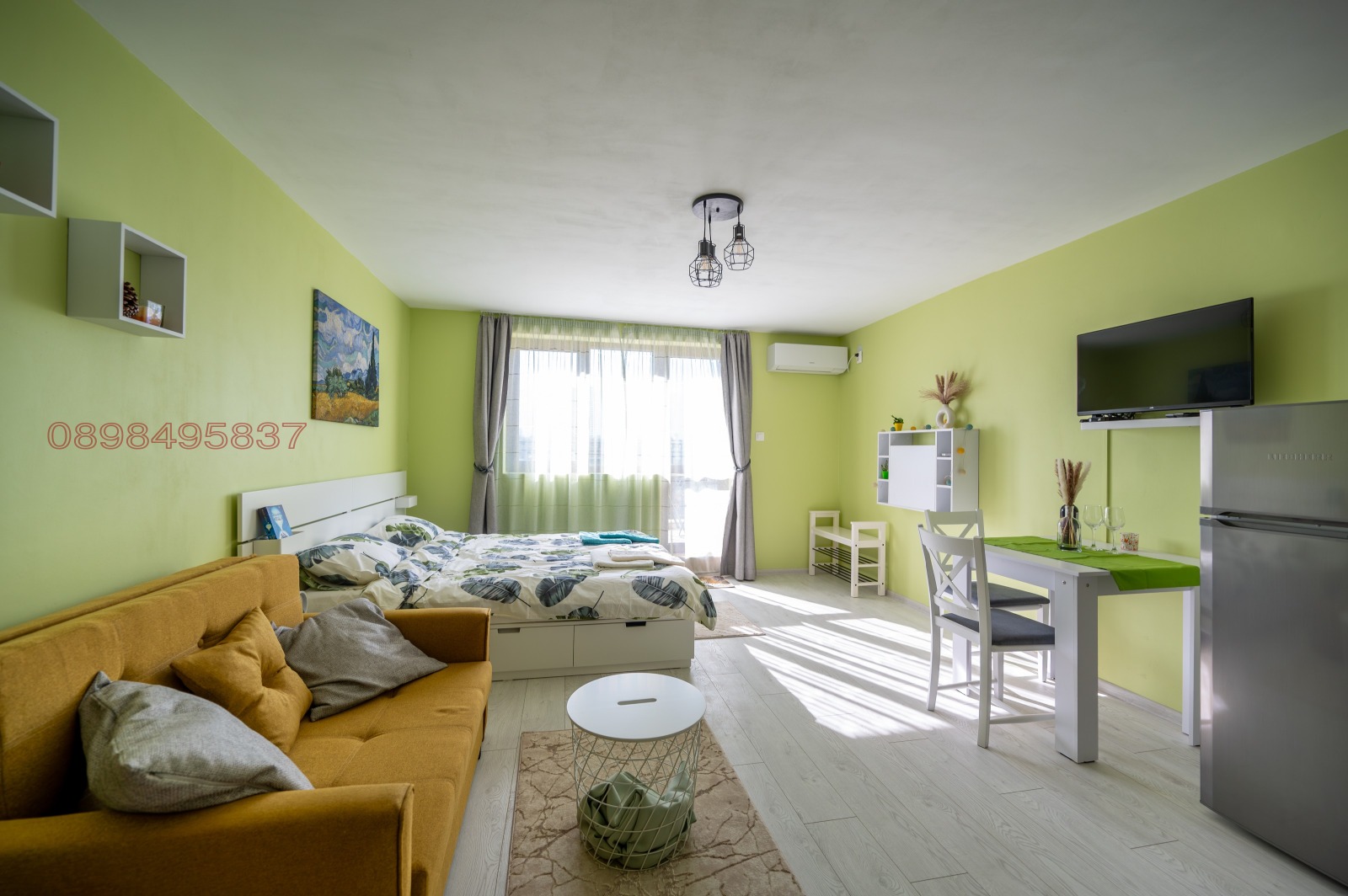 Напълно обзаведено, включително и със спално бельо. Кухненски бокс с всичко необходимо, южно изложение, тераса с хубава гледка на юг към Витоша.