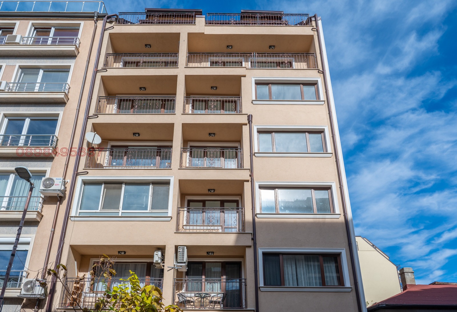 Сградата е масивна, санирана, с асансьор и контрол на достъпа. Етажът е предпоследен.