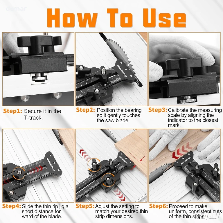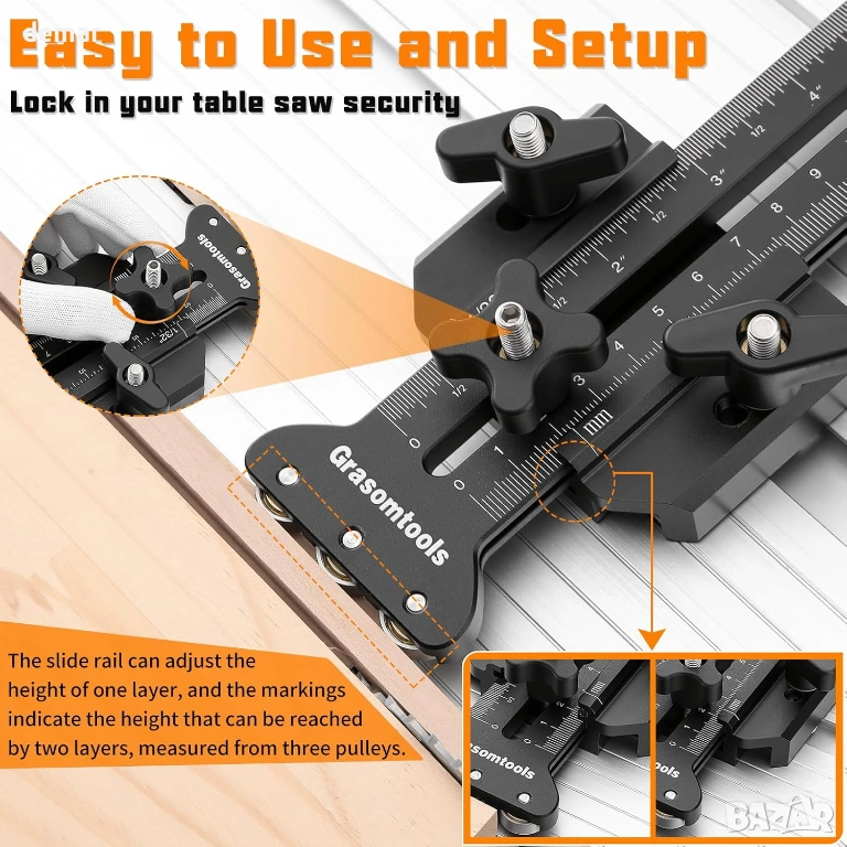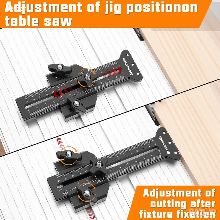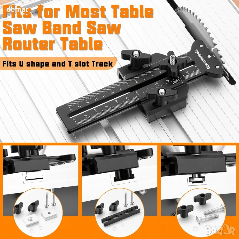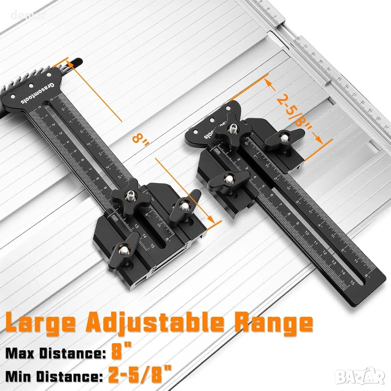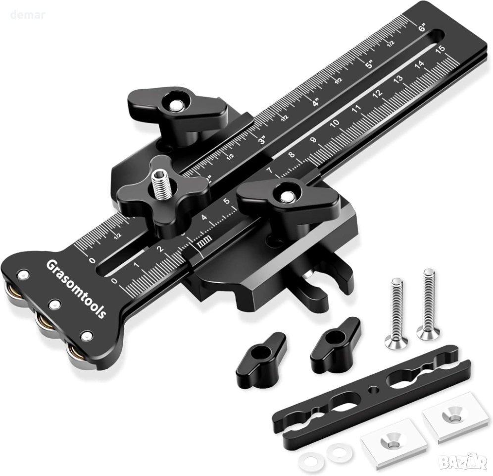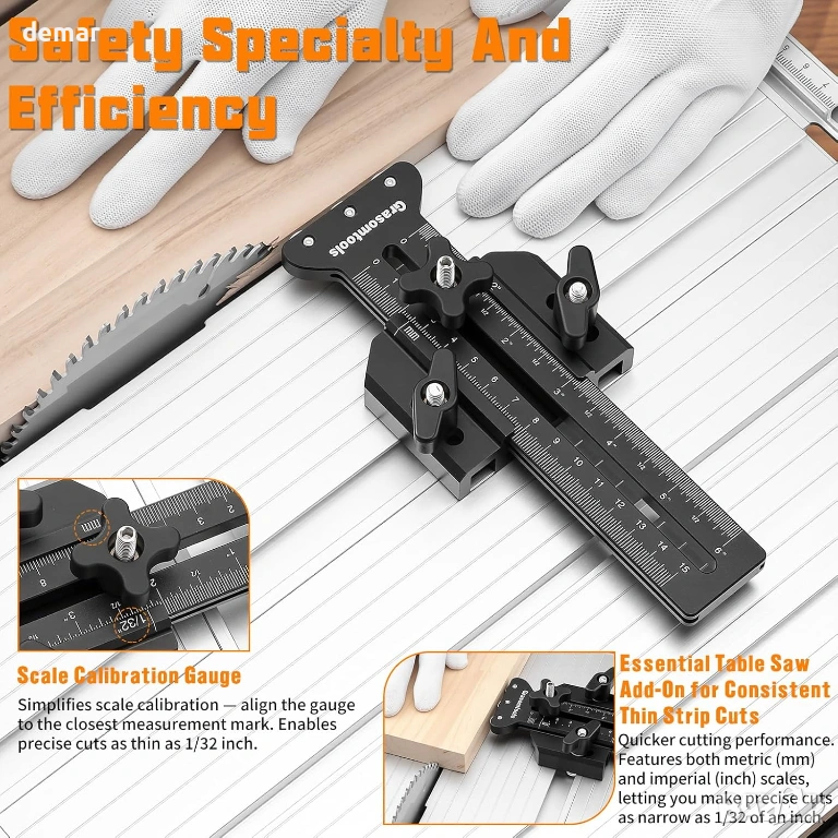 Този тънък шаблон за надлъжно рязане разполага със стабилна система с 3 ролки с еднопосочен лагер, за да се предотврати обратен удар и да се осигури плавно и контролирано рязане, докато увеличената контактна площ намалява клатушкането за получаване на тесни ивици. Включва ясни лазерно гравирани метрични и имперски скали с подравняване с нулева хлабина, осигуряващи прецизни, повтаряеми разрези до 1/32 инча и минимизиращи отпадъците от материал. Проектиран да пасва на повечето стандартни настолни циркуляри, лентови циркуляри и фрези, той поддържа често срещани размери на Т-образни канали и предлага регулируем диапазон на рязане от 2-5/8" до 8". Изработен от издръжлива алуминиева сплав, той е устойчив на износване, ръжда и деформация, поддържайки дългосрочна точност. Инструментът се инсталира бързо без сложна настройка, което позволява бърза и ефективна работа както за начинаещи, така и за опитни потребители.