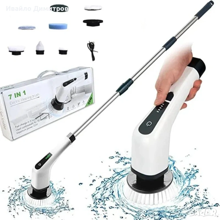 Направете почистването на банята по-бързо, по-лесно и по-ефективно с тази многофункционална електрическа четка с 7 приставки. Подходяща е за плочки, фуги, вани, мивки, подове и дори труднодостъпни ъгли, като премахва мръсотията и упоритите петна без усилие.