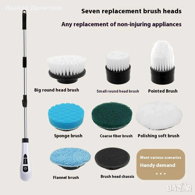Електрическа четка за баня с 7 приставки и телескопична дръжка