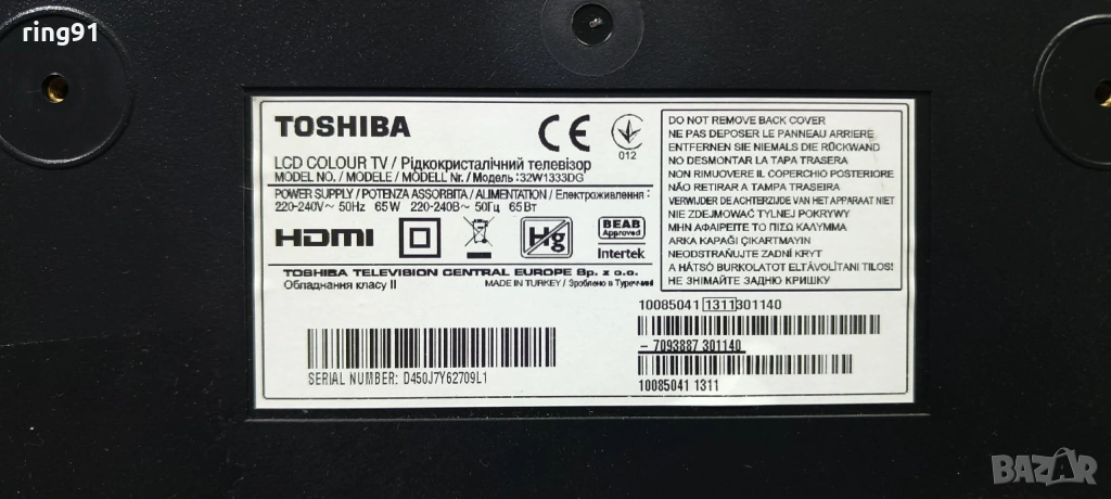 Захранване - 17IPS11 300413-R4 TV Toshiba 32W1333DG → Обява 54217304