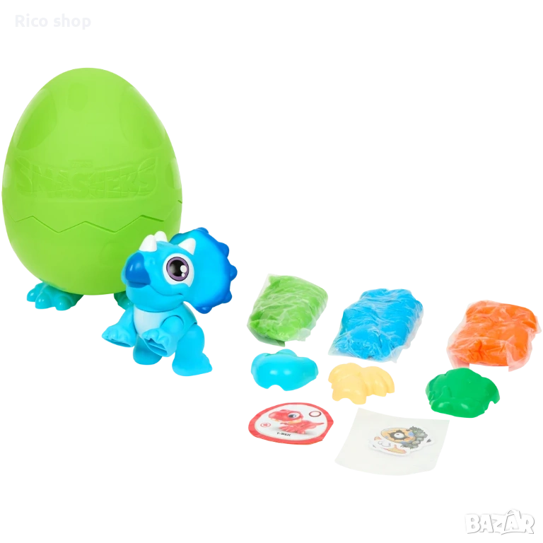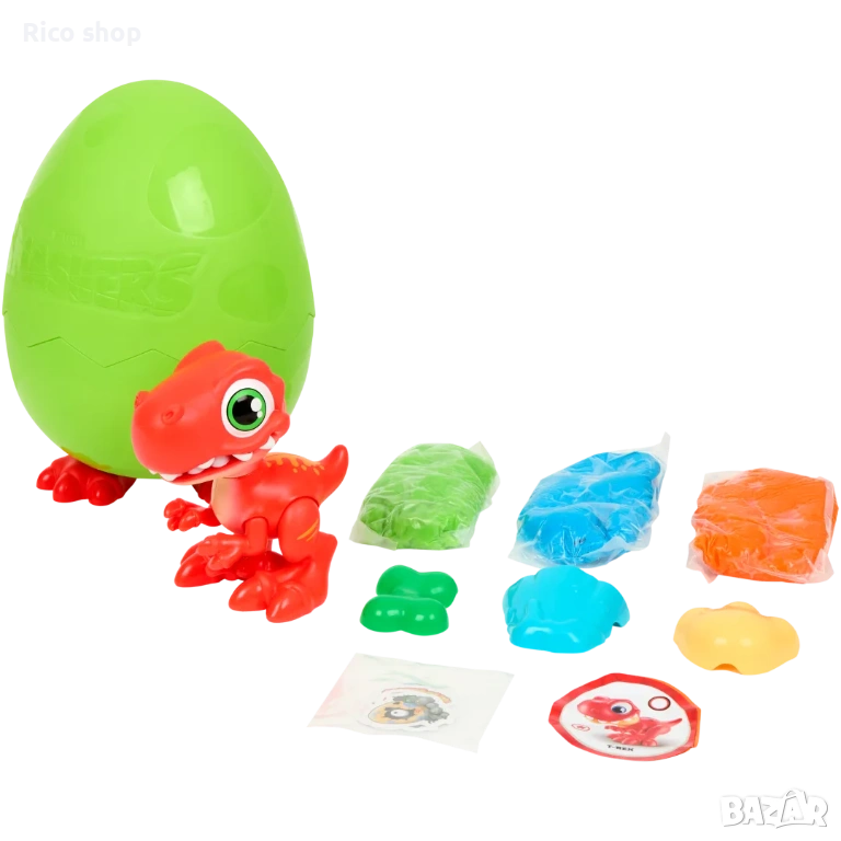 Вътре ще намерите динозавър за сглобяване , цветна глина и множество аксесоари, които ви позволяват да създадете свои собствени дино светове, пълни с въображение и забавление.