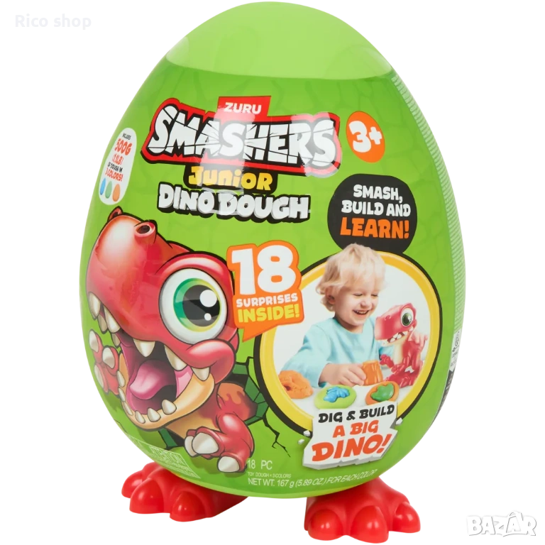 Открийте гигантско яйце-изненада , което пренася децата в завладяващ свят на праисторически приключения! ZURU Smashers Junior Dino Dough е креативна играчка, предназначена за най-малките изследователи, които обичат динозаврите, моделирането и строителството.