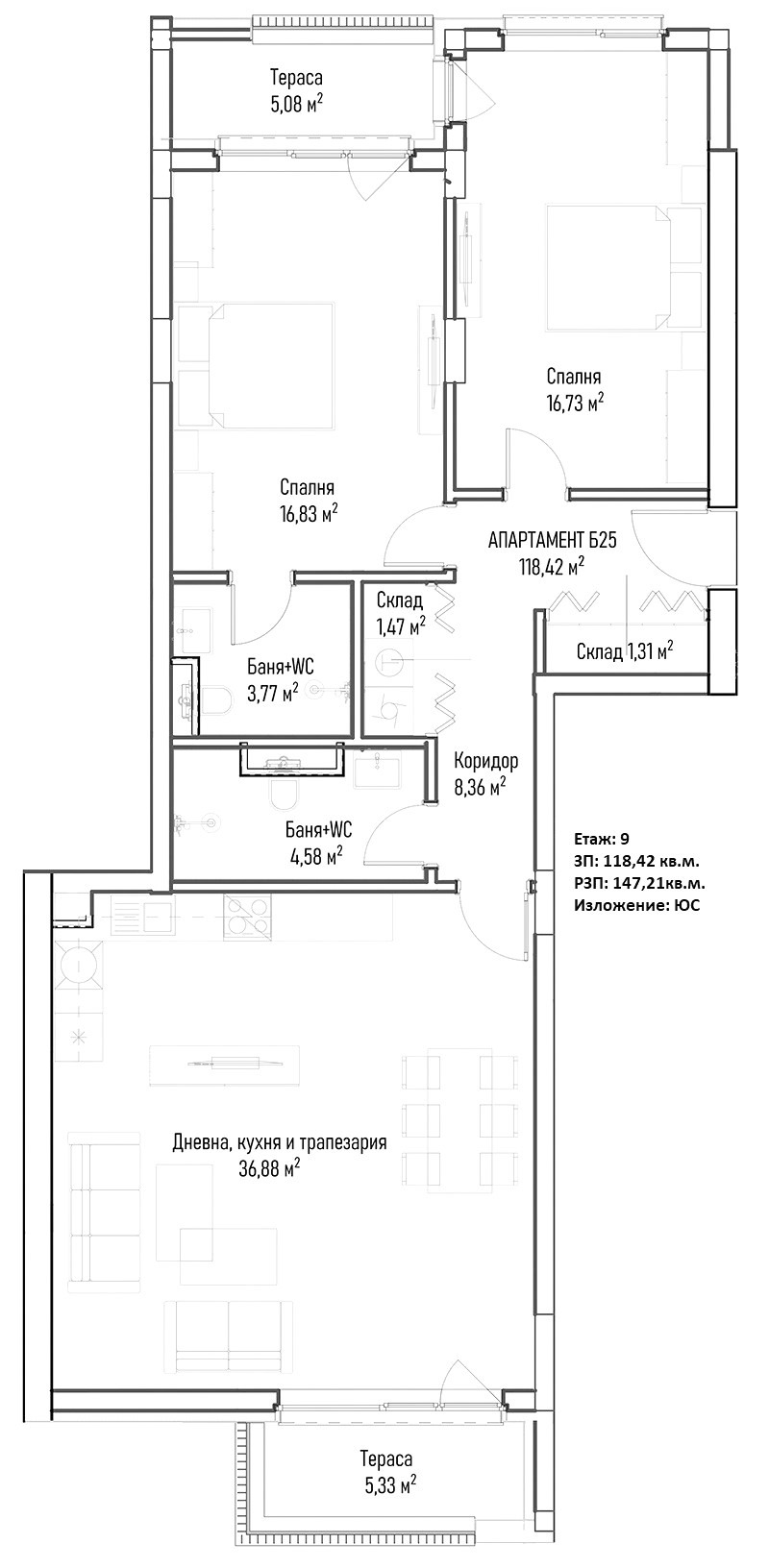 📐 Обща площ: 148 кв.м.