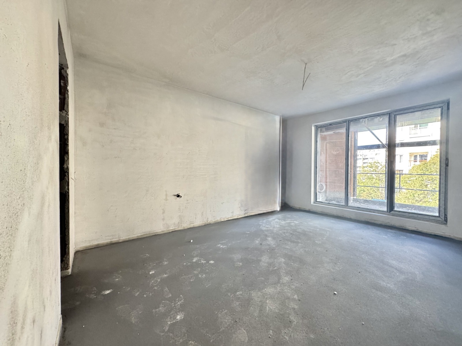 🛋️ Светла и уютна всекидневна с кухненски бокс и излаз към балкон