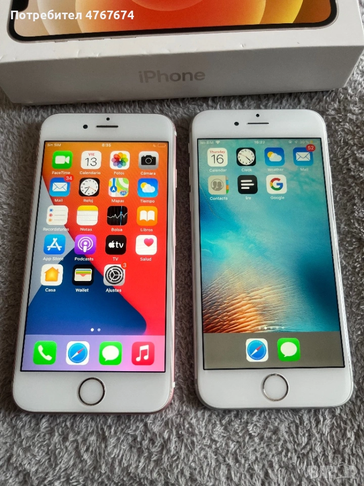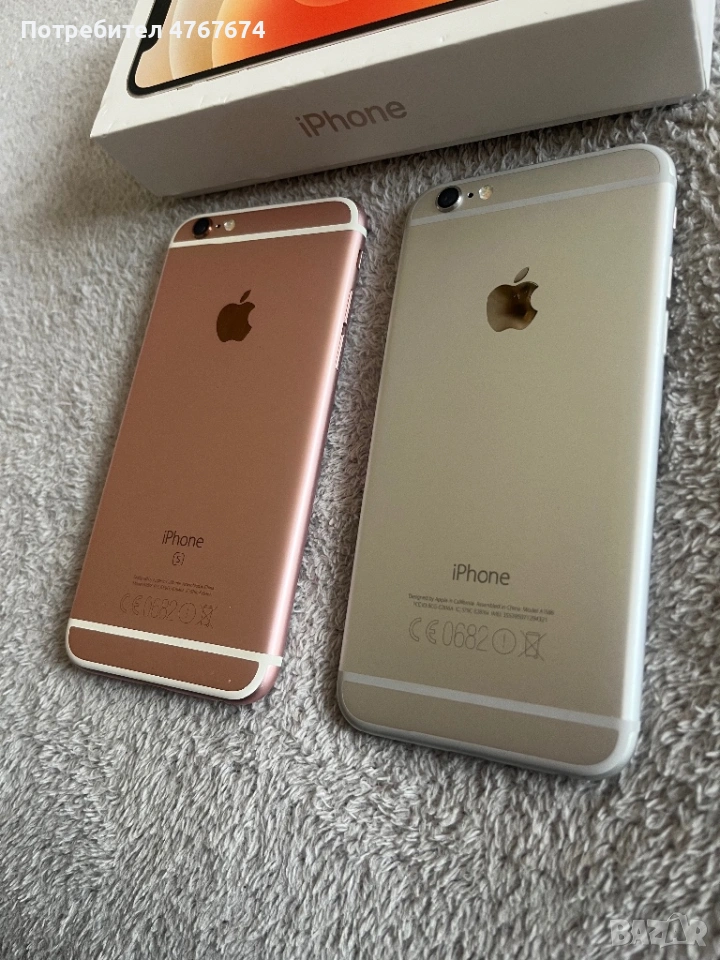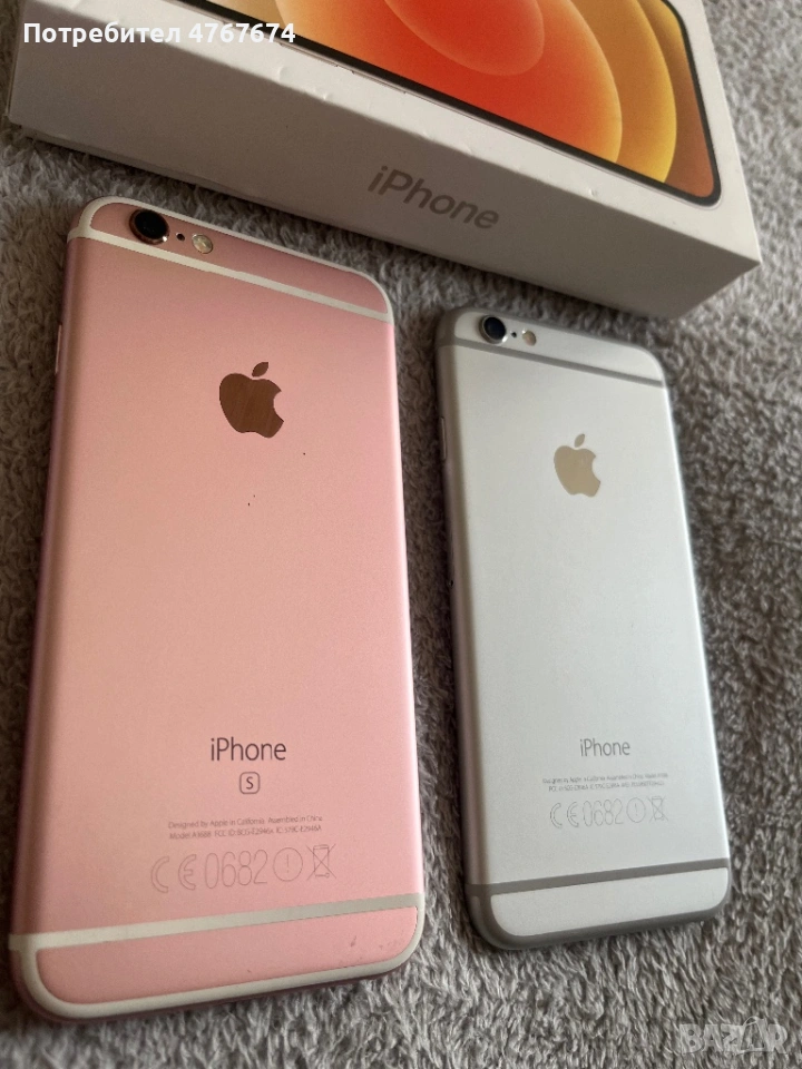 Продавам iPhone 6 (сив) и iPhone 6s (розов), и двата са в отлично състояние и работят без проблем.