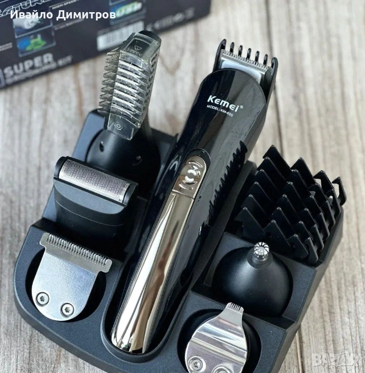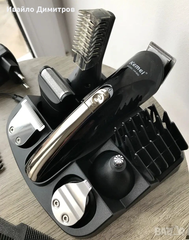 Машинка за подстригване Kemei KM-600, 11в1, 3W, 5 приставки и Стойка