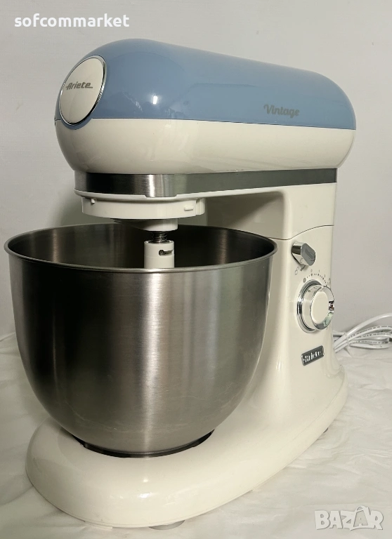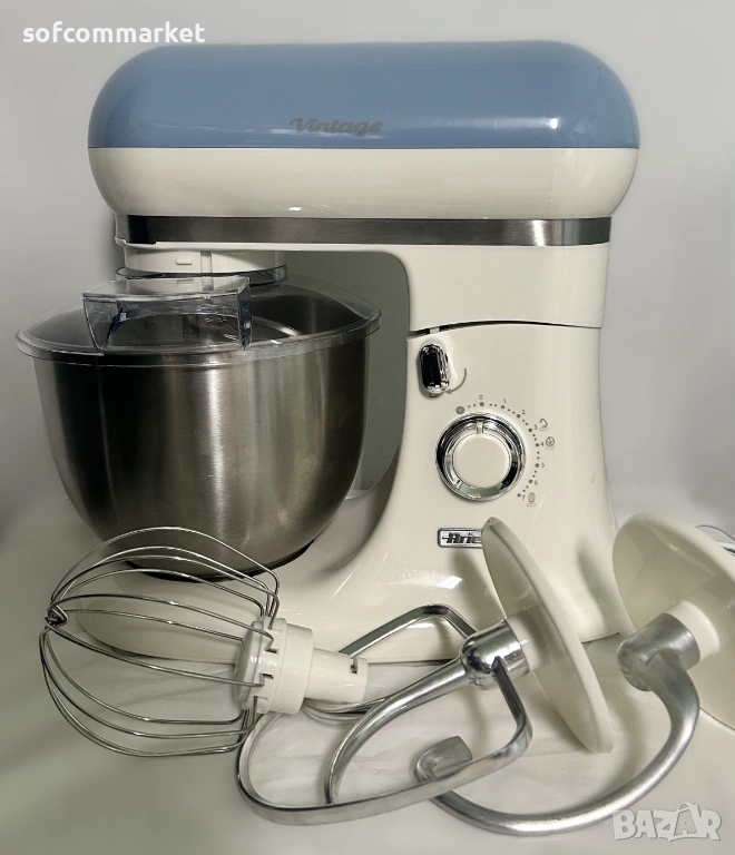 планетарен миксер Ariete Vintage (модел 1588). Уредът е в оригиналната си опаковка, неизползван и е идеален подарък за всеки любител на готвенето. Съчетава уникален ретро дизайн в пастелни цветове с изключителна мощност.