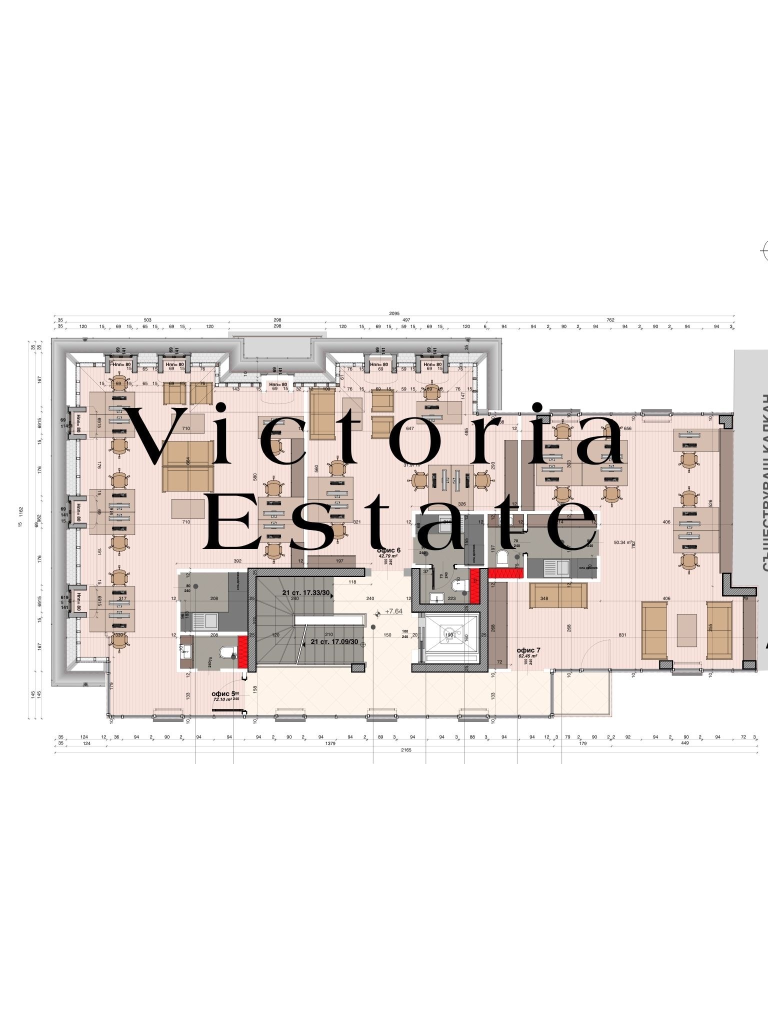Разпределение: Функционално зониране, включващо просторна 'open space' площ и отделни кабинети, идеални за зали за срещи или мениджърски офиси.