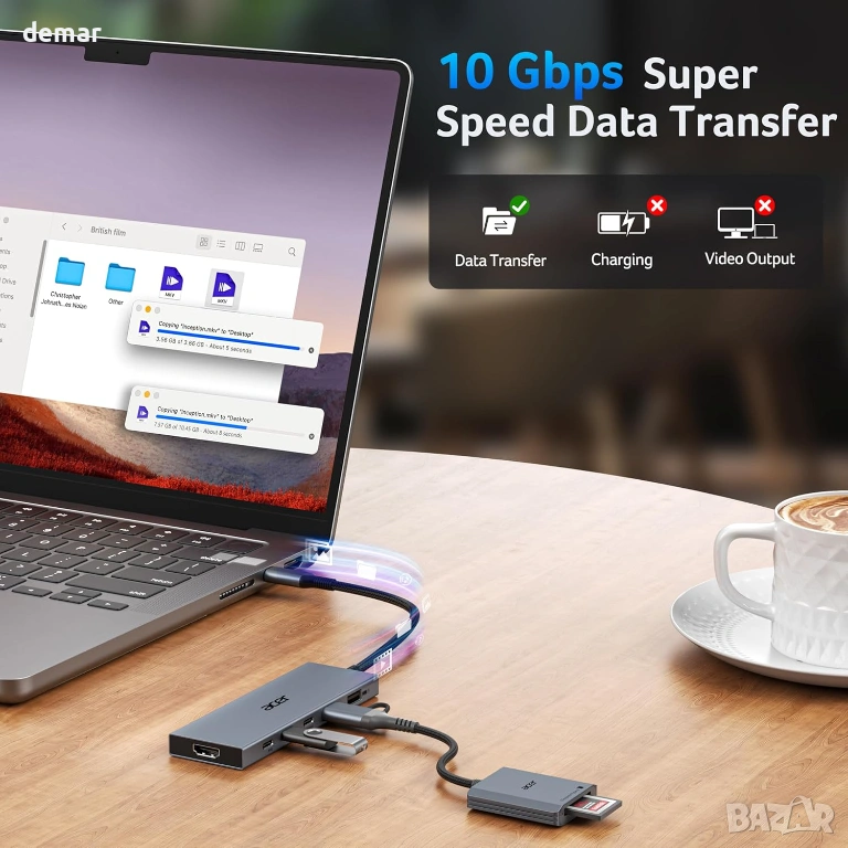 Acer 6-в-1 USB C хъб 10Gbps, USB C към HDMI адаптер 4K@60Hz, 2×USB-C 3.2, 1×USB A 3.2, 1×USB 2.0