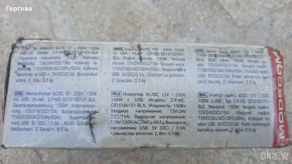 1. Нов инвертор MODECOM MC-CO15. Напрежение 12V, мощност 150W