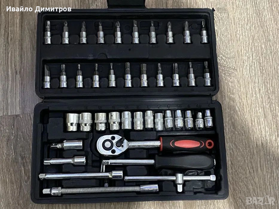 Комплект от 46 части гедоре 1/4 на марката STAHLMAYER . Комплекта е изработен от висококачествена стомана и е достатъчно устойчив на тежки натоварвания. Инструментите са прегледно подредени в пластмасова кутия за удобно съхранение и транспорт.