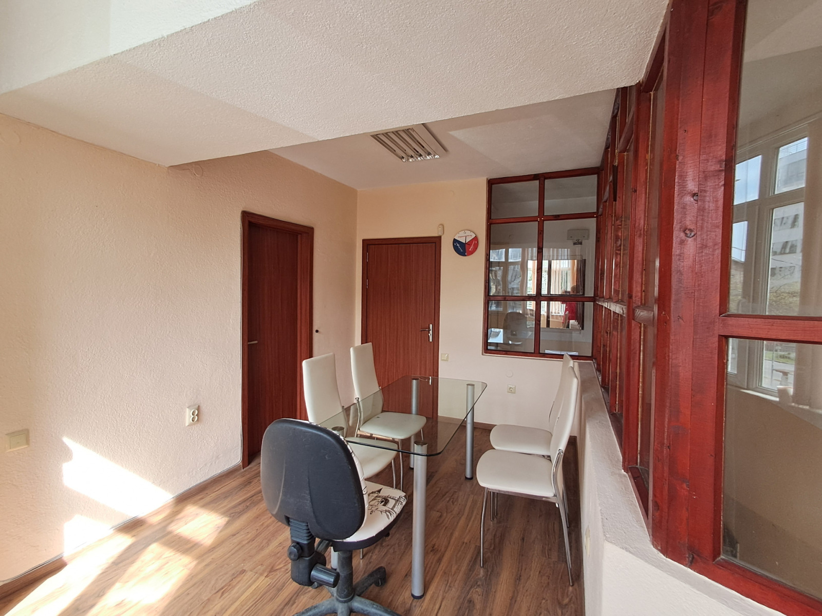 Офисът се предлага с наличното обзавеждане. Разполага с климатик. Подовото покритие в залите е ламинат. Поставени са луминисцентни осветителни тела, вертикални щори и ПВЦ дограма. Имотът е собственост на юридическо лице. Отдава се дългосрочно, с едномесечен депозит. В наемната цена е включено открито паркомясто. Подходящ е също за СПА/соларно студио, счетоводна/нотариална кантора, детска занималня/учебен център, лекарски/стоматологичен кабинет и други.