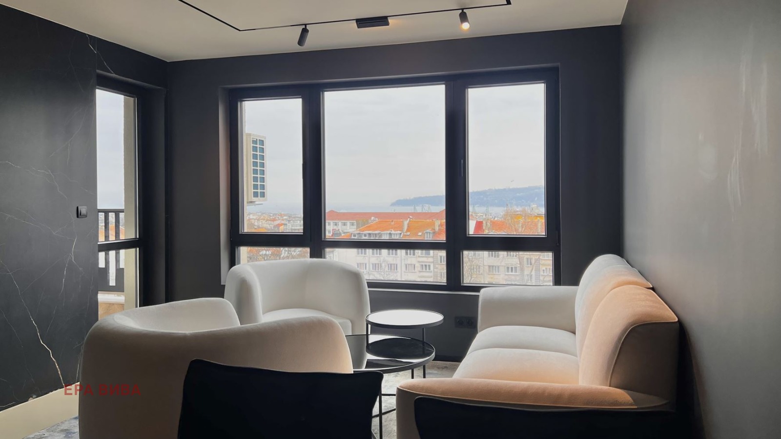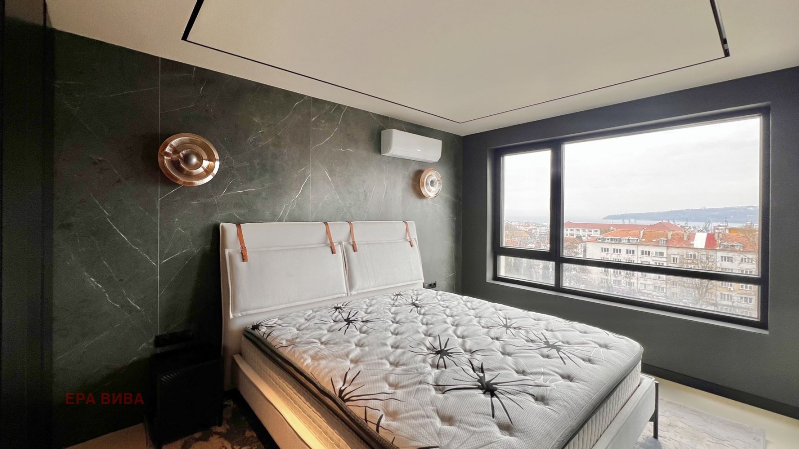 ЕРА Вива продава тристаен апартамент в нова сграда с Акт 16, разположена в централната част на гр. Варна. Имотът е разположен на осми етаж и е със застроена площ от 72.35 кв.м. /101 кв.м. с общите части/. Състои се от коридор, дневна с кухненска част, две спални, санитарно помещение и балкон с нескриваема гледка. Апартаментът се предлага напълно и луксозно обзаведен и оборудван с най-висок клас електроуреди, готов за нанасяне. Всяка стая е инсталиран климатик за отопление и охлаждане, осигуряващ комфорт през всички сезони.