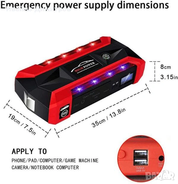 Ще ви е от полза през студените зимни дни. Навсякъде с вас. Вече не се тревожете за падналия акумулатор или спаднала на пътя гума, Джъмп стартер е с вас!