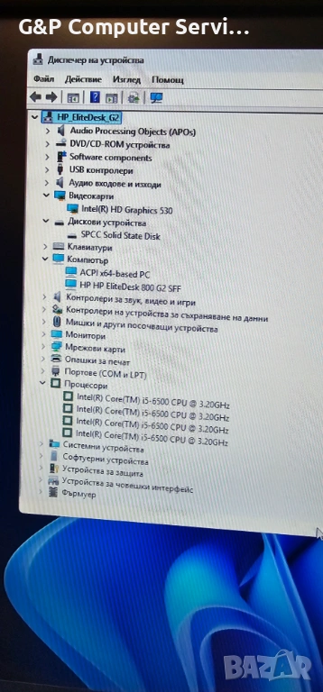 Компютър: HP EliteDesk 800 G2 SFF