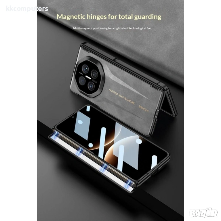 Оборудван е с магнитна защита на пантата, която подсилва уязвимите зони по ръбовете и сгъвката на телефона. Конструкцията осигурява стабилно прилягане, плавно отваряне и затваряне и допълнителна устойчивост при употреба.