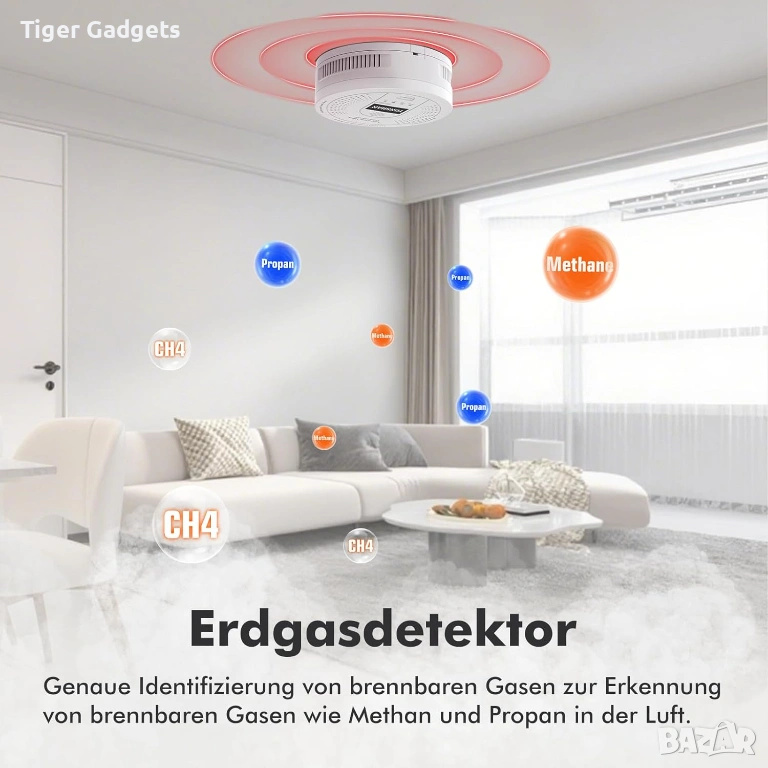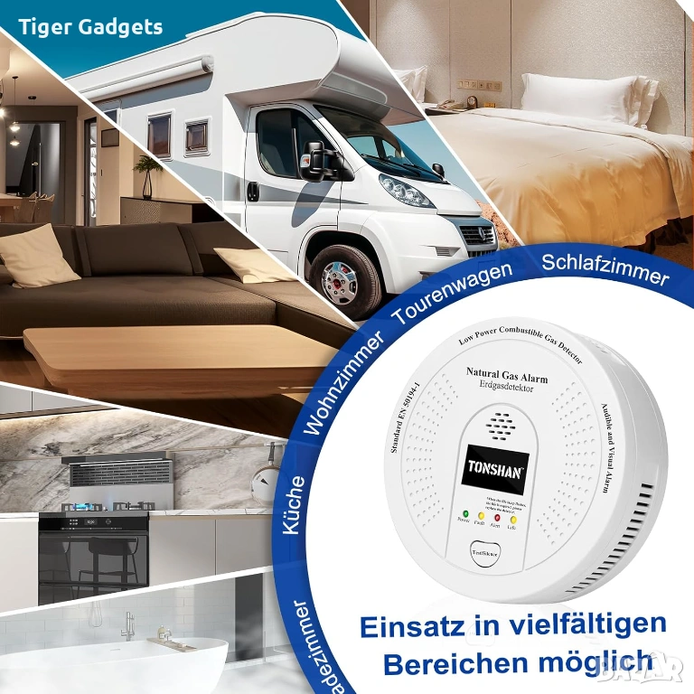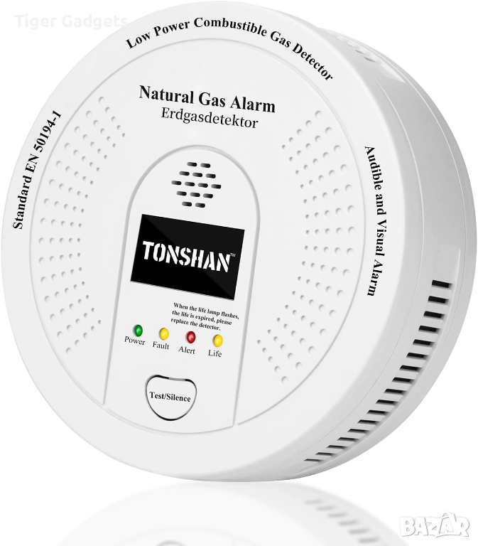 Tonshan D730 е газ детектор за домашна безопасност, предназначен за откриване на метан (CH4), пропан и други запалими газове, като осигурява навременно предупреждение при теч.