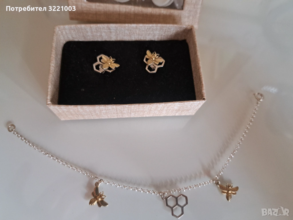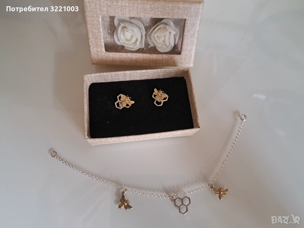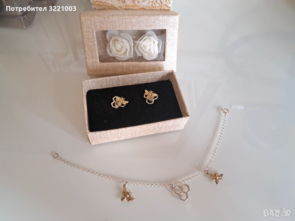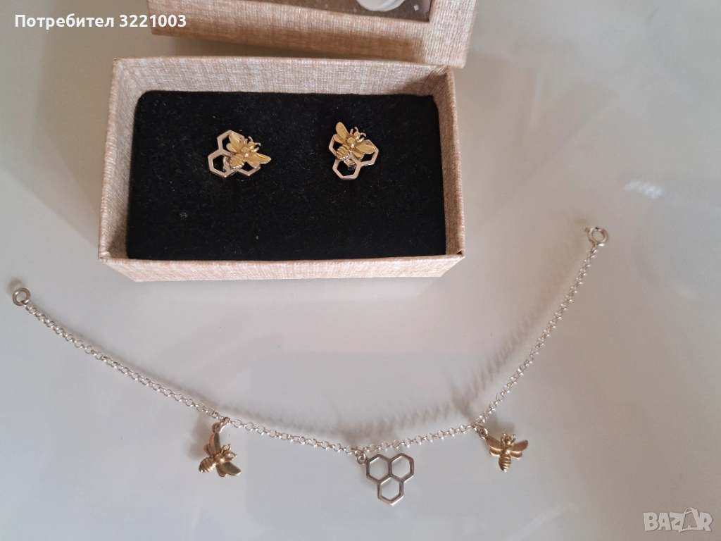 Комплект сребърна гривна и обеци пчели → Обява 54219036