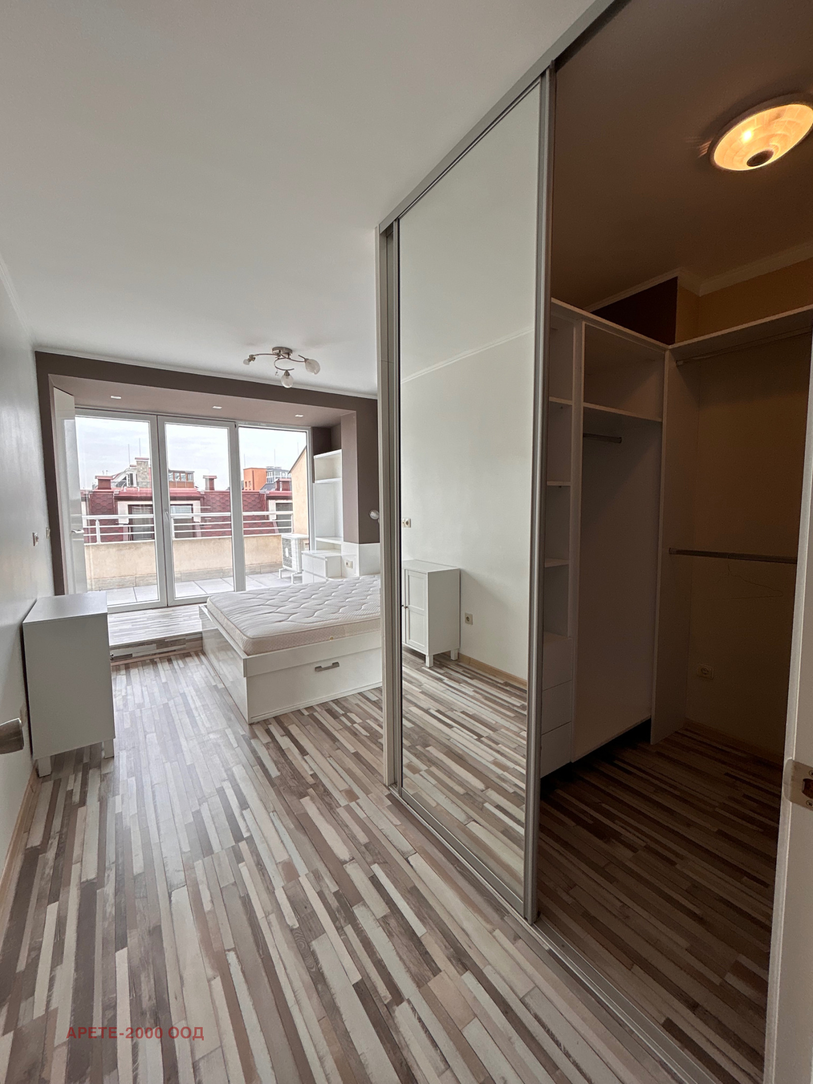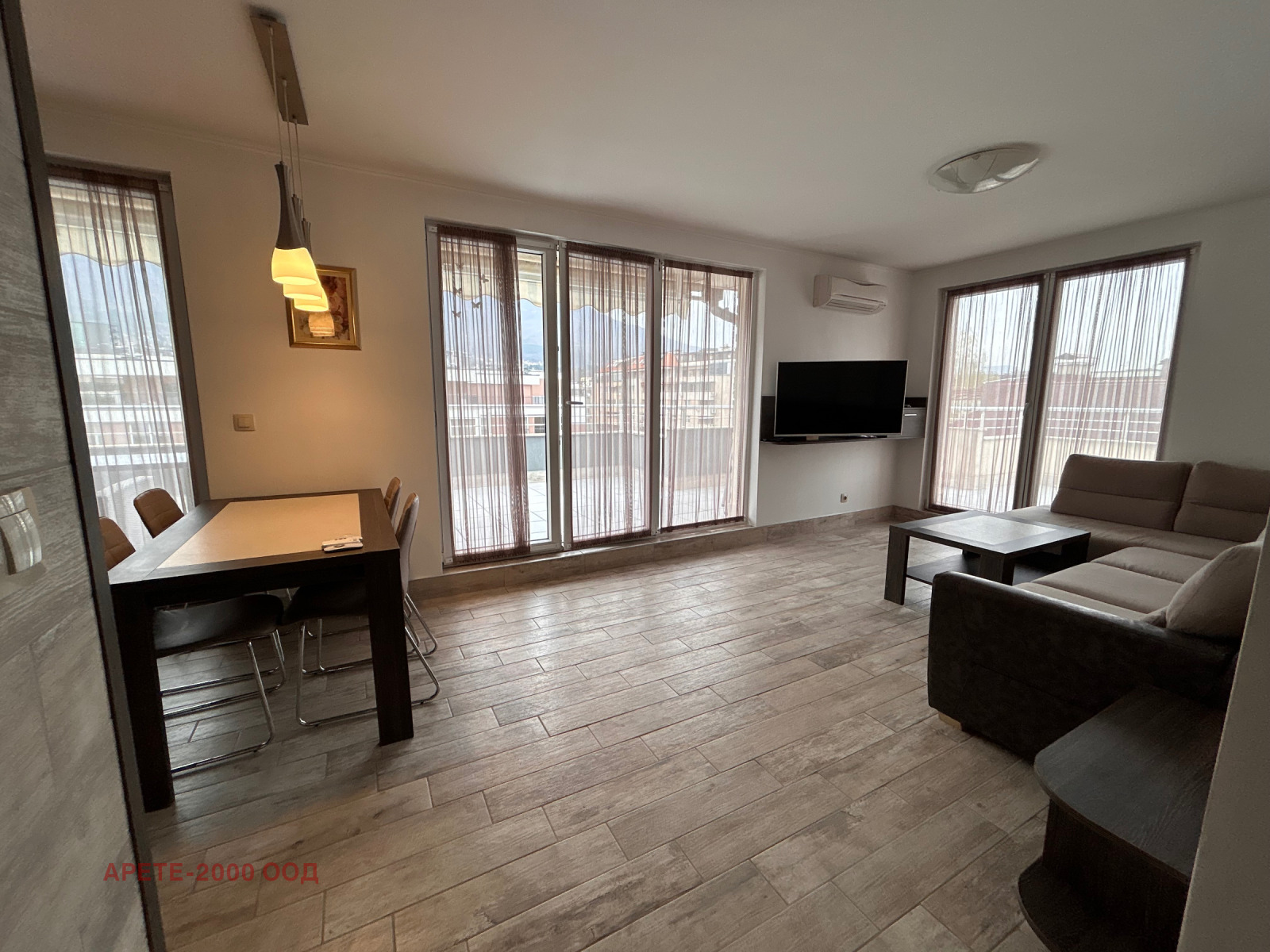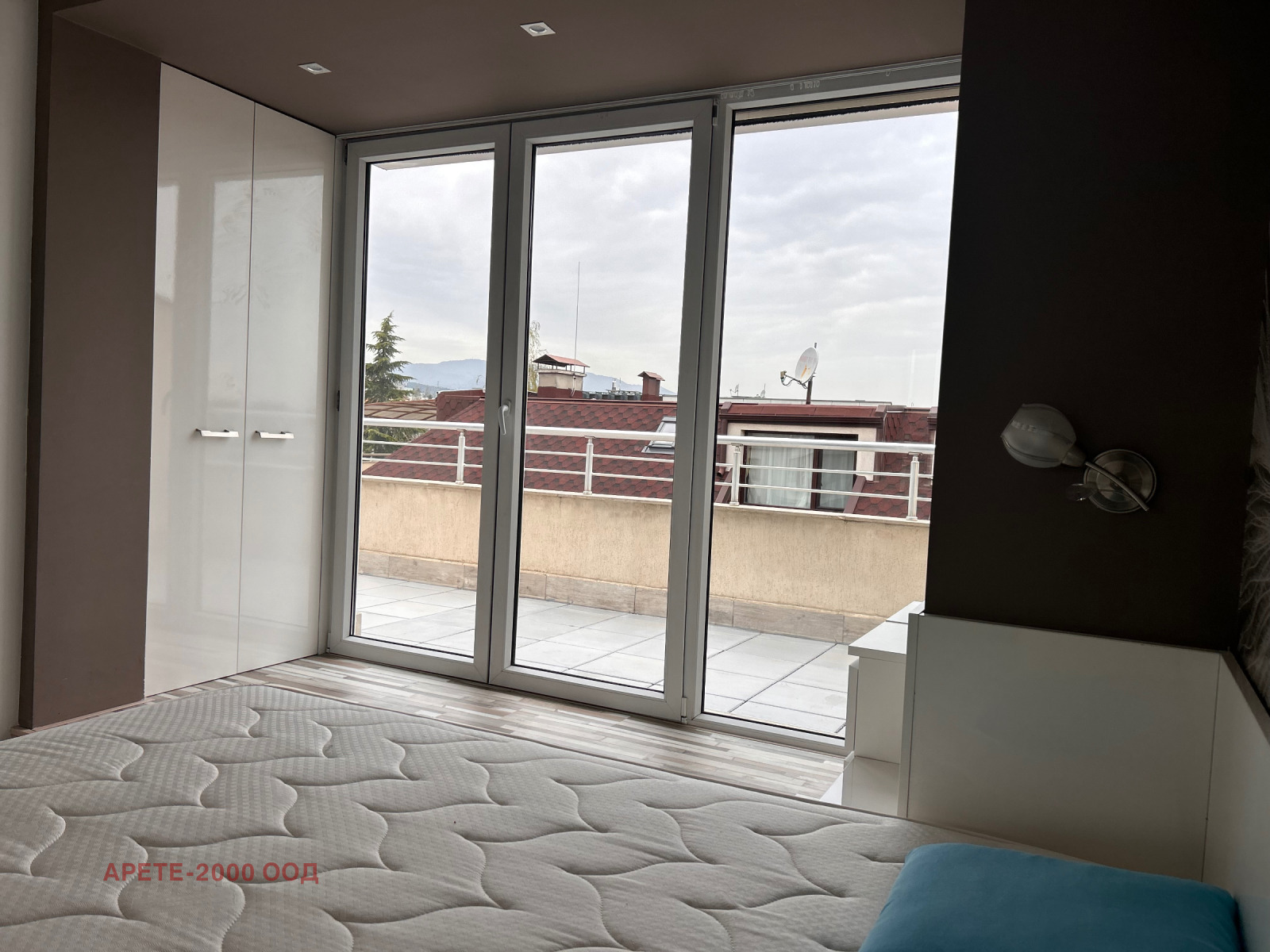 Фирма АРЕТЕ предлага прекрасен и светъл апартамент с панорамна гледка към Витоша. Жилището разполага с голяма тераса от 25 кв.м с механичен навес (с дистанционно) и обособен кът за почивка с мека мебел.