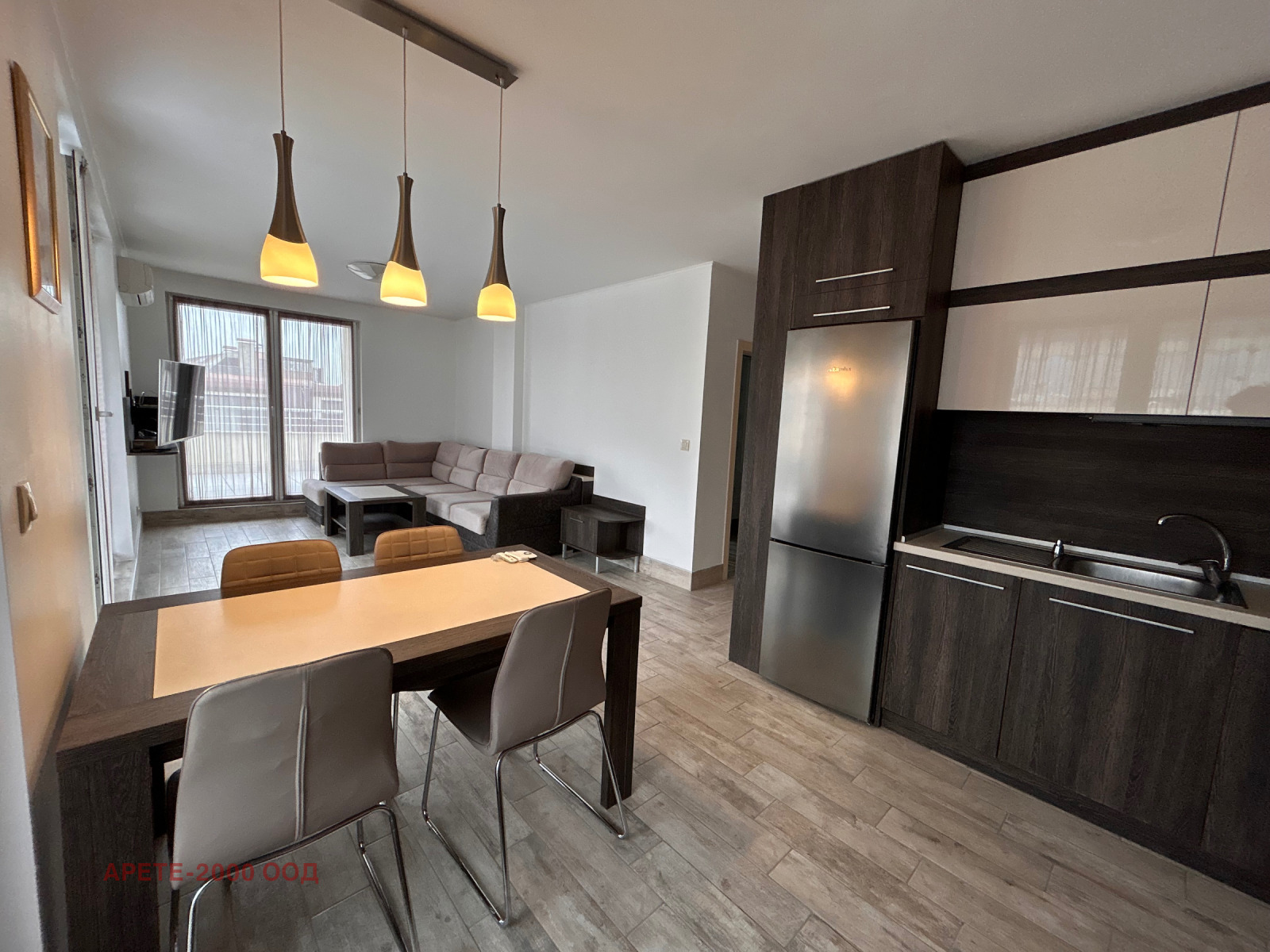 Апартаментът е с южно изложение, което го прави топъл и слънчев през целия ден. Отдава се напълно обзаведен и оборудван, в много добро състояние.