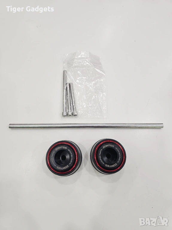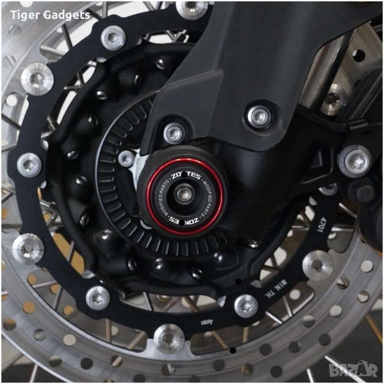 Комплект предпазители за предната ос (axle sliders), предназначени за модели ZONTES, които осигуряват защита на предната вилка и оста при падане или удар, като същевременно добавят стилен завършек на мотора.