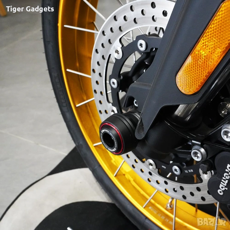Изработени са от CNC обработен алуминий в комбинация с устойчиви полимерни елементи (POM/найлон), които поемат удара и намаляват риска от повреди по вилката, оста и спирачната система. Подобни протектори са създадени да поемат първоначалния контакт със земята и да предпазят по-скъпите компоненти .