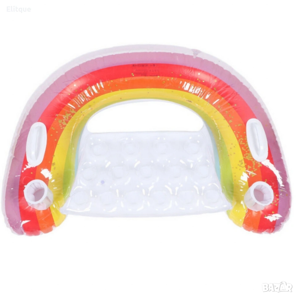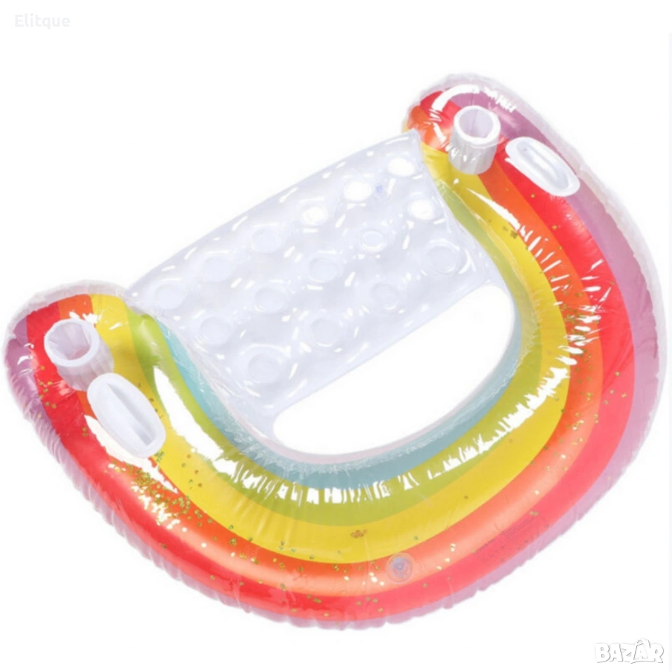 Надуваем матрак дъга 115x70 см с поставки за чаши – стилен и удобен за басейн и летен релакс
