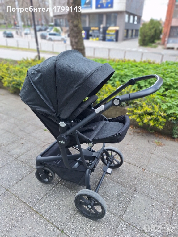 Количката е в много добро състояние, почти като нова. Предлага се в пълен комплект с всичко необходимо от самото начало: голям кош за новородено, летен вариант, столче за кола и оригинална чанта.